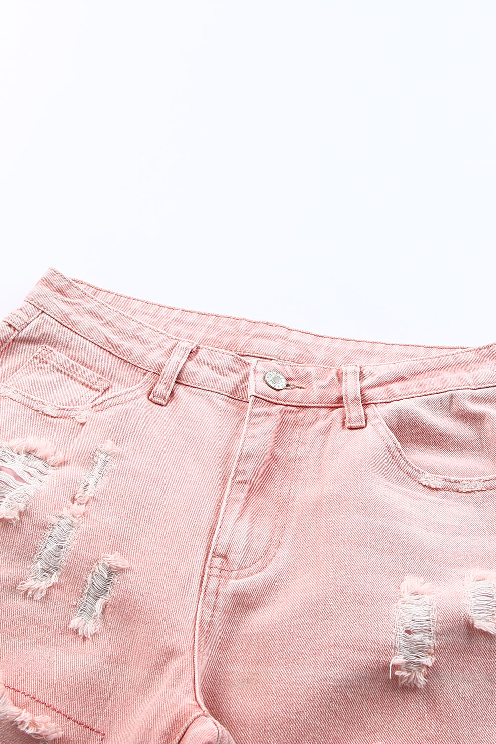 - Zip closure, classic five pockets, button ripped jeans with the center rise, and shredded holes.