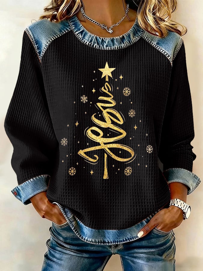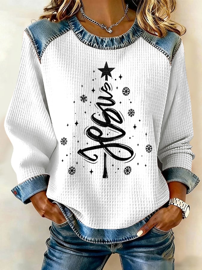 Retro Christmas Jesus Print Sweatshirt