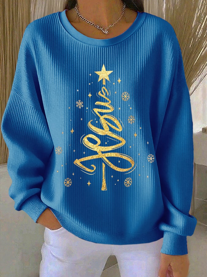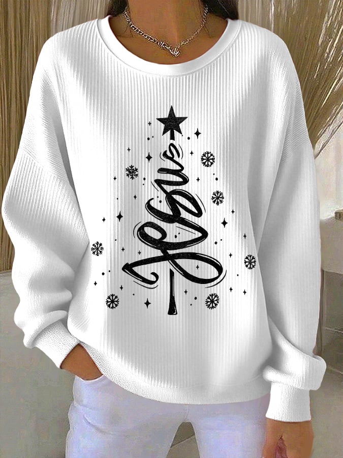 Retro Christmas Jesus Print Sweatshirt