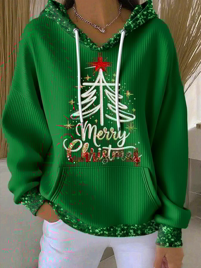 Retro Merry Christmas Cross Faith Print Hoodie