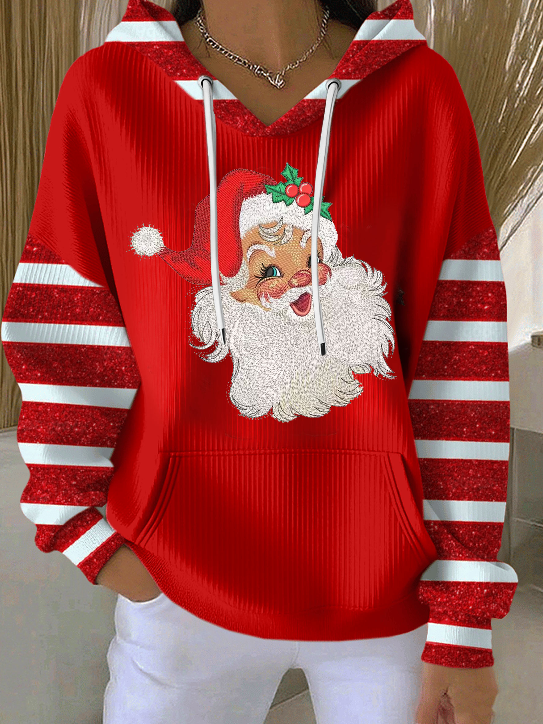 Santa Claus Christmas Art Casual Hoodie Sweatshirt