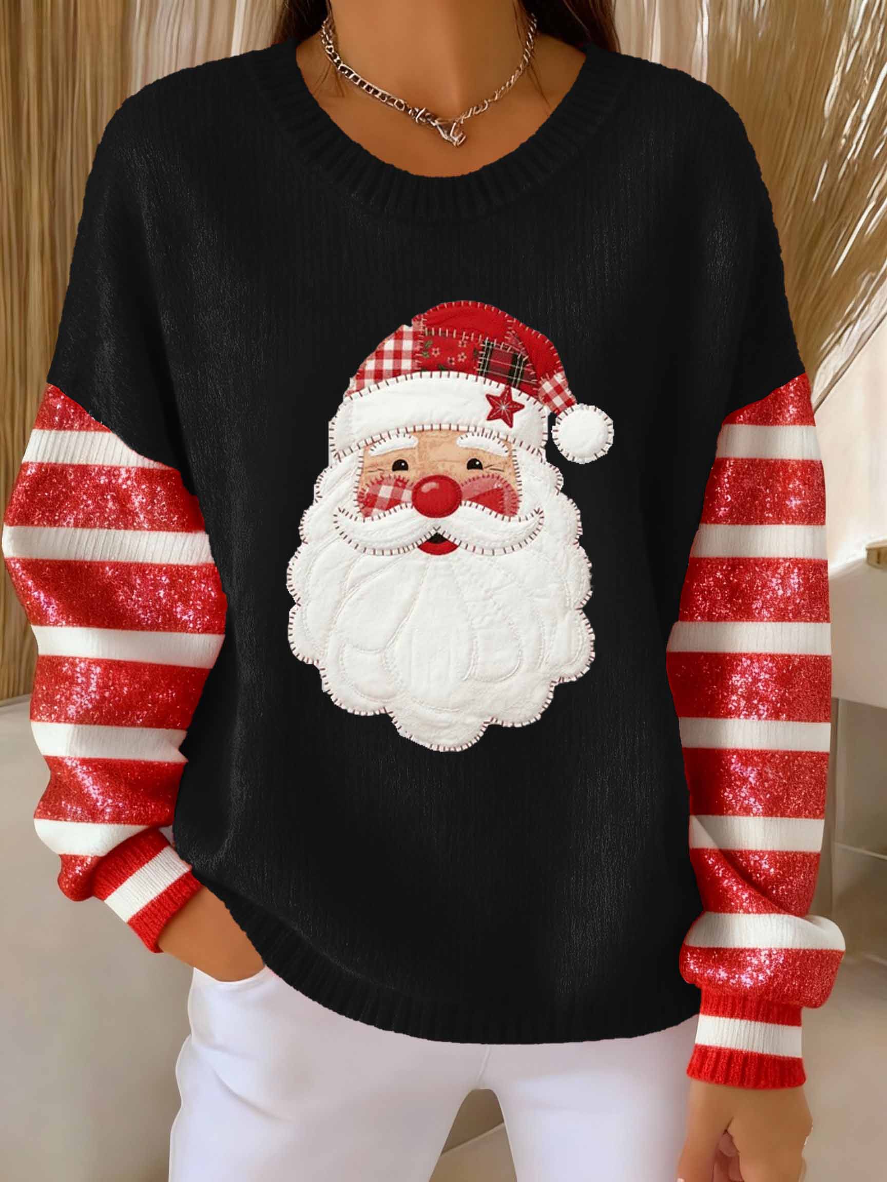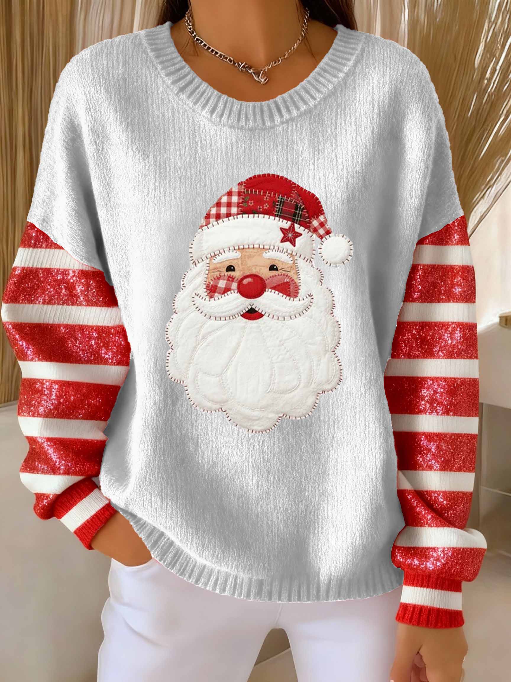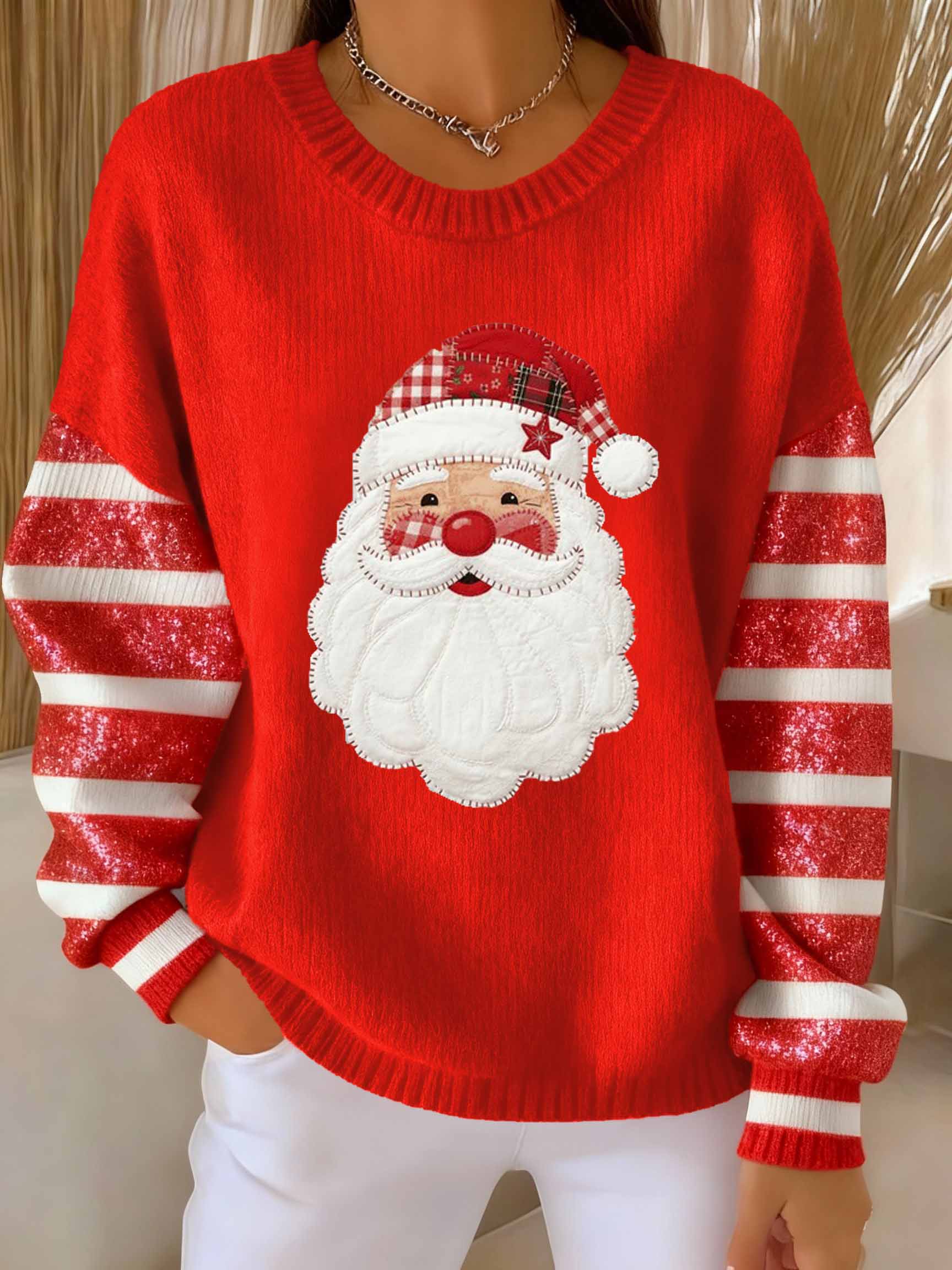 Santa Claus Red Stripes Christmas Art Print Knit Pullover Sweater