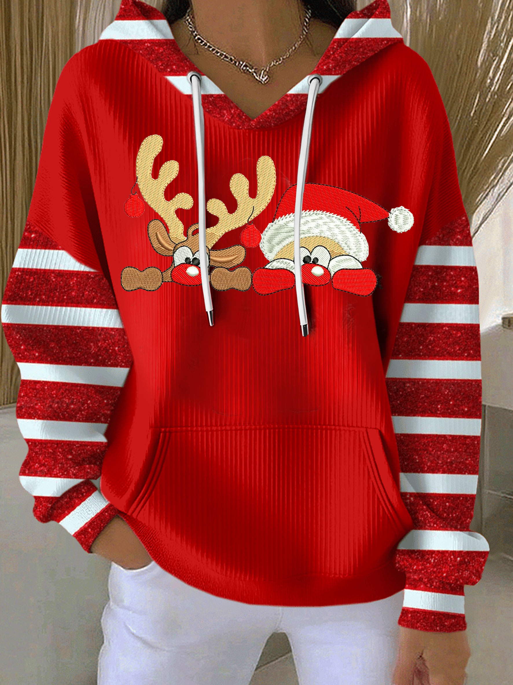 Santa With Deer Christmas Art Casual Hoodie Sweatshirt