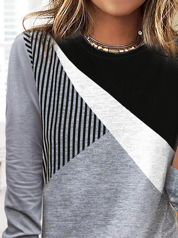Striped Casual Autumn Daily Loose 1 * Top Long sleeve Crew Neck Regular T-shirt for Women