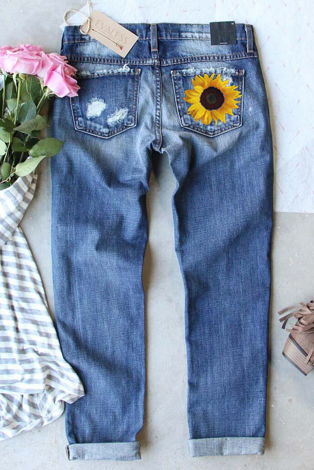 - Sunflower ripped design in the jeans makes it more swish and unique