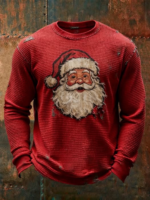 Vintage Distressed Santa Claus Print Casual Sweatshirt