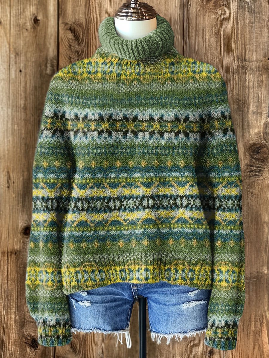 Vintage Winter Christmas Print Knit Turtleneck Pullover Sweater