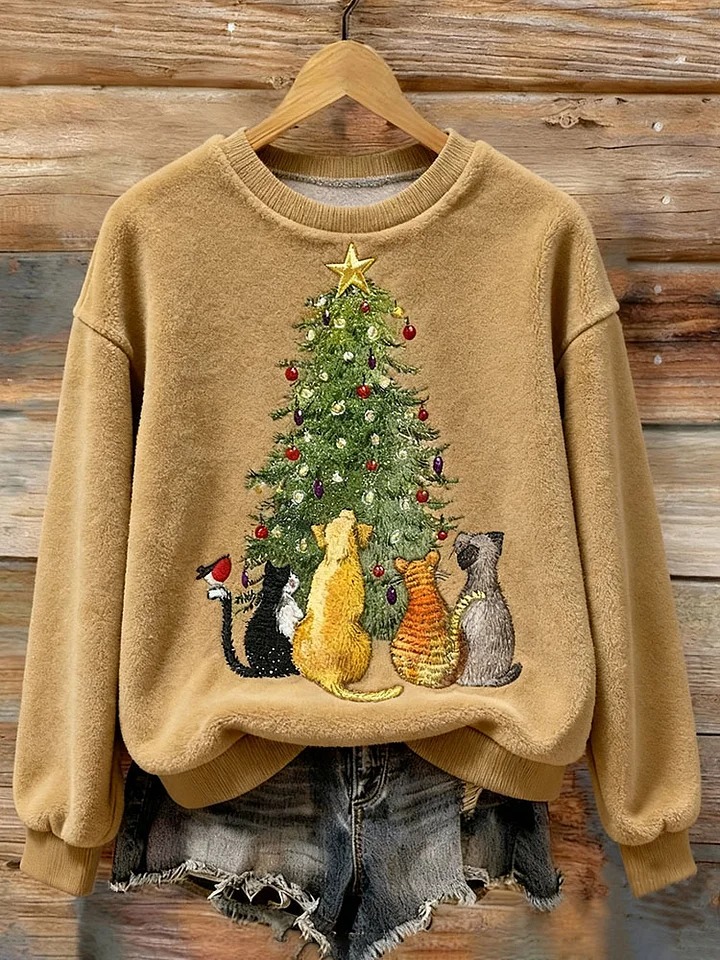 Waiting For Christmas Art Casual Cotton Plush Sweatshirt