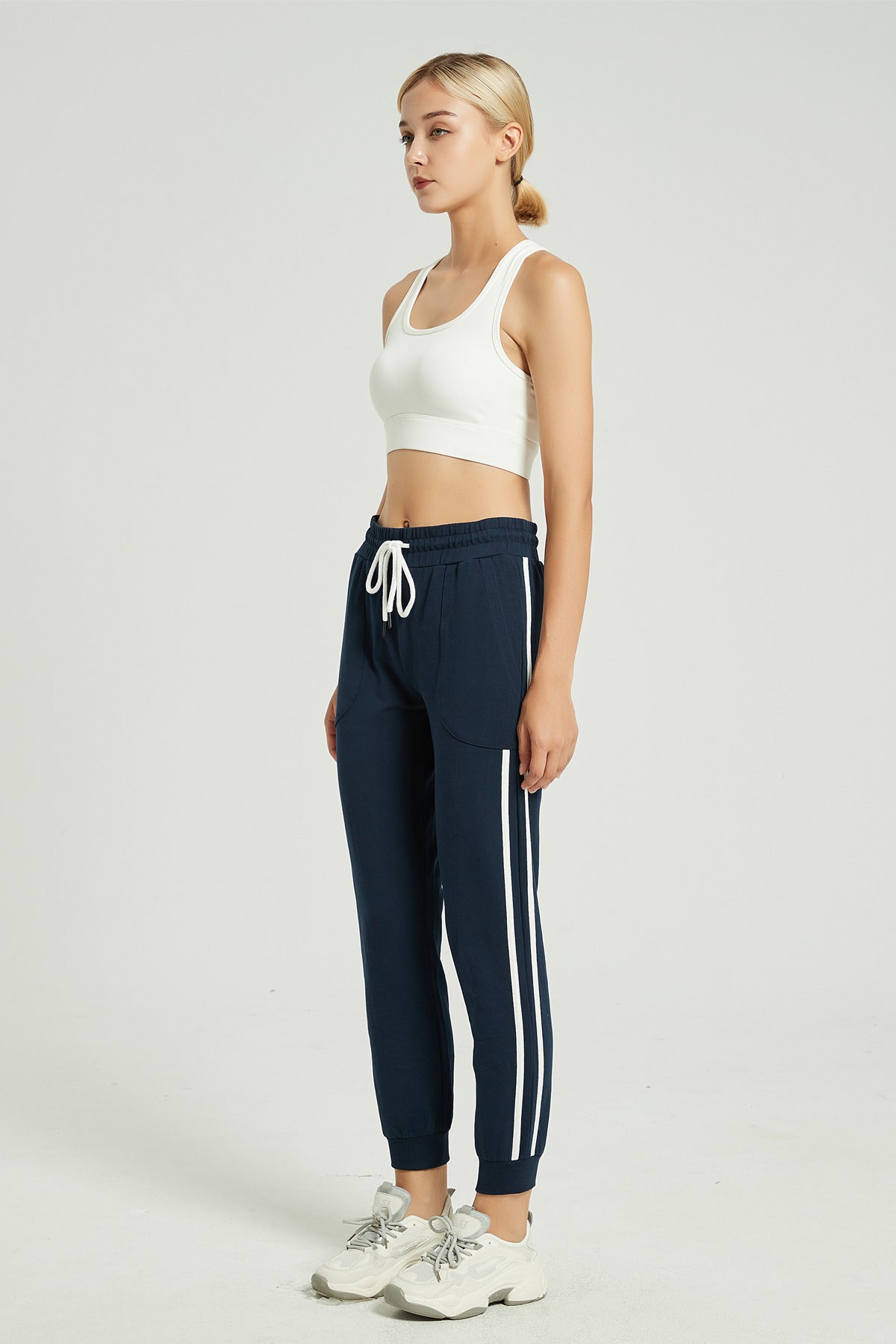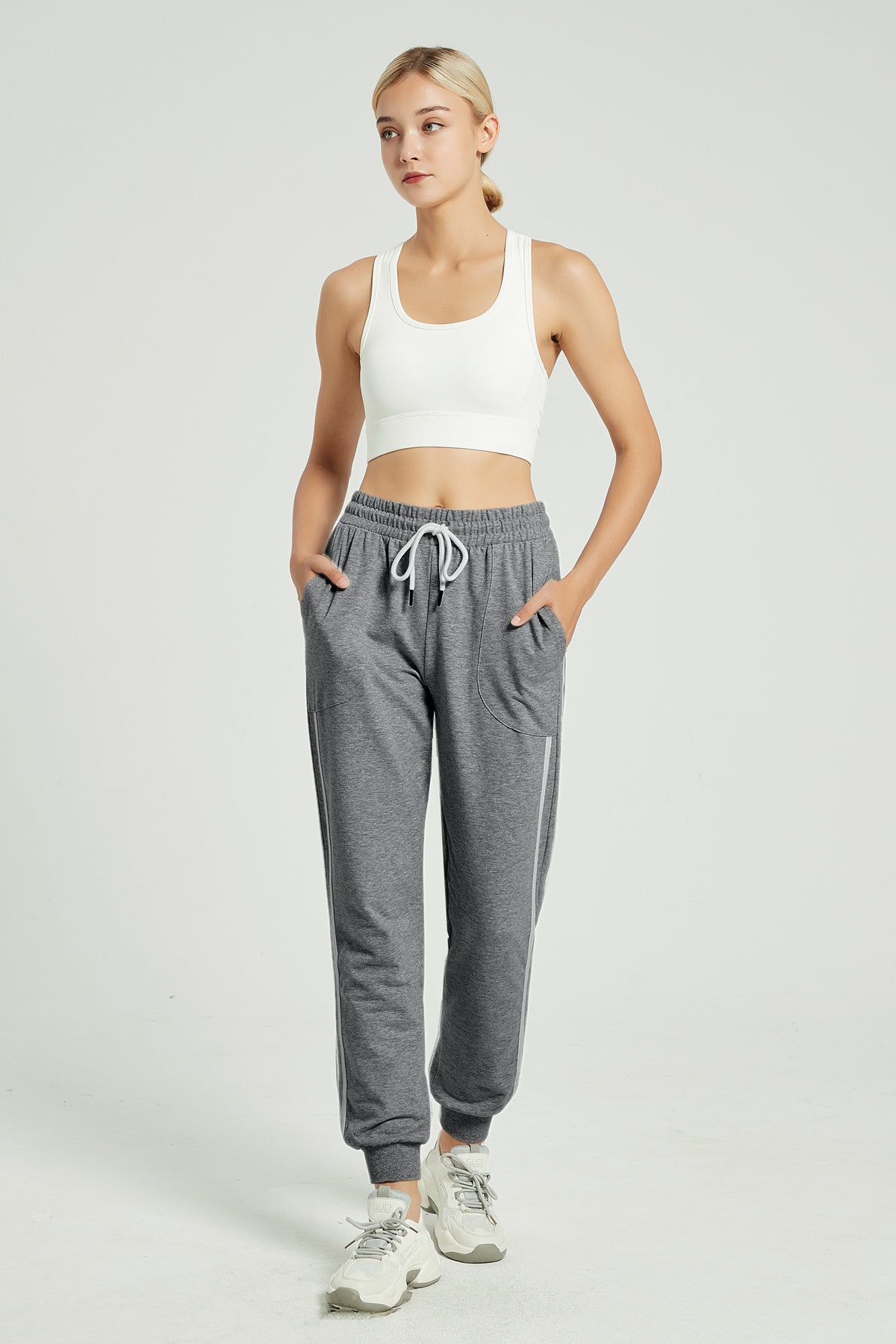 These women's jogger sweatpants are the ultimate in casual wear,?made with 95% cotton and addtional 5% spandex to gain extra strechness,? pair them with a?crop top or white t-shirt, a chunky cardigan, or an untucked oxford. For a low-key look, layer a flight jacket over a t-shirt and accessorize with a beanie and boots.