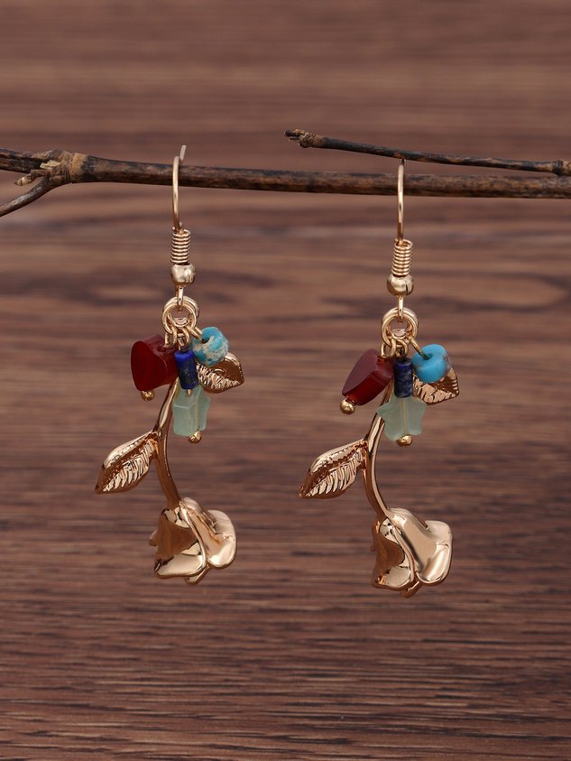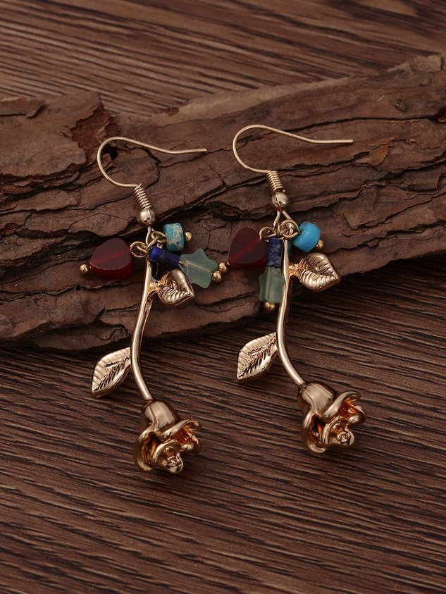 Casual Vintage Crystal Beaded Rose Pattern Earrings Commuter Jewelry