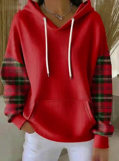 Women's Casual Christmas Contrast Color Hooded Sweatshirt