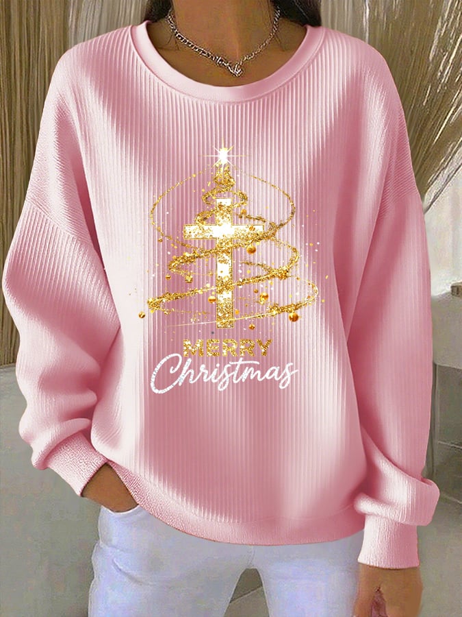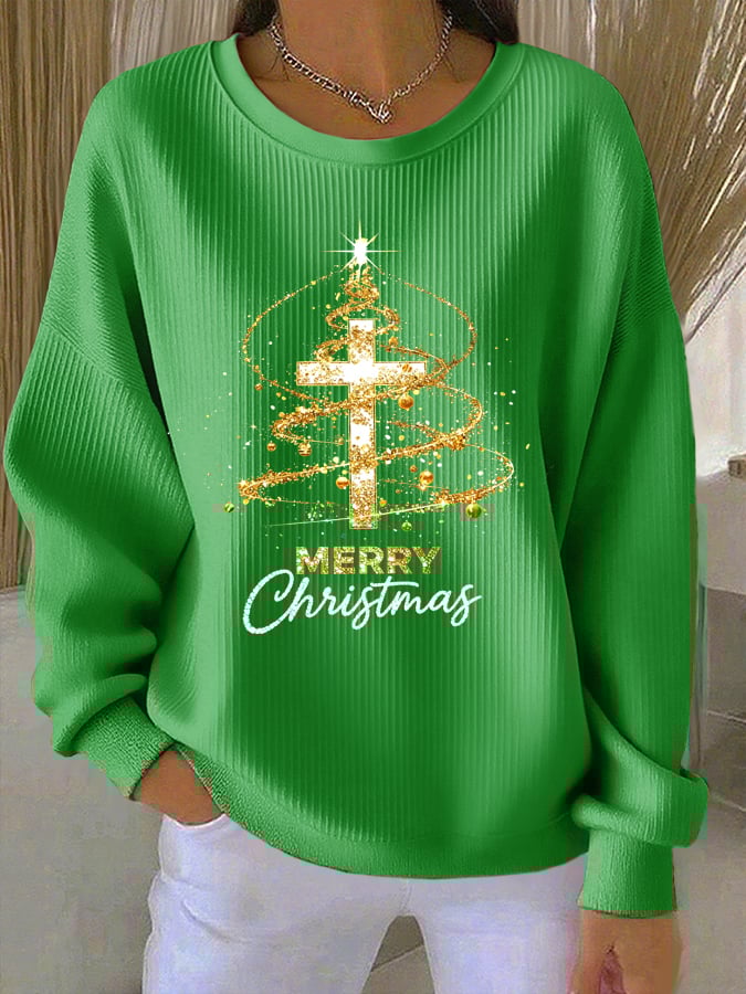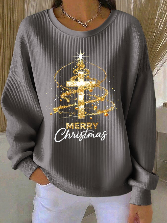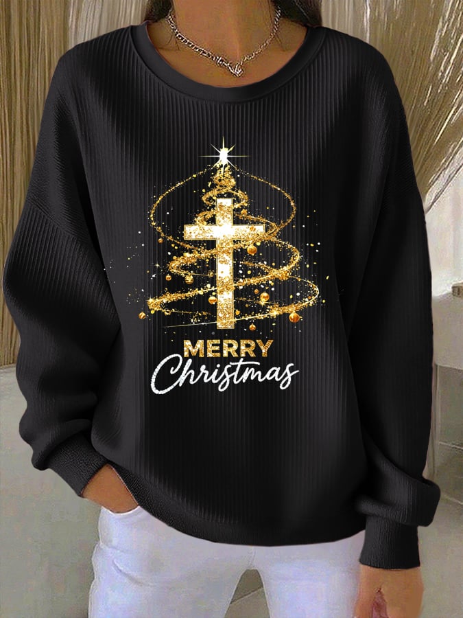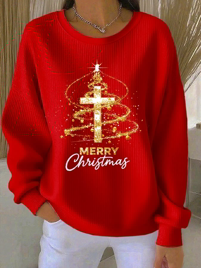 Women's Christmas Faith Cross Print Casual Sweatshirt