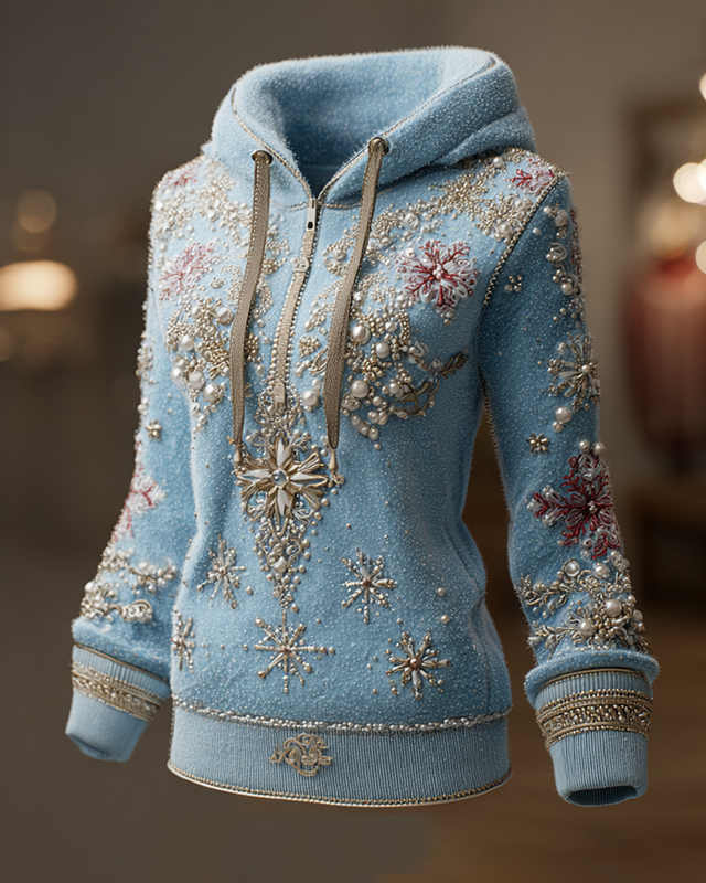 Women's Autumn/Winter Christmas Item: Embroidered Warm Hooded Sweatshirt 6572