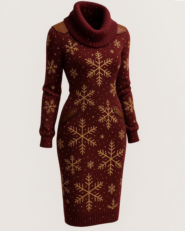 Women's Christmas-themed embroidered elegant knit sweater dress 6302