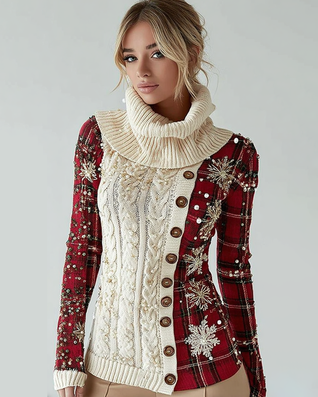 Women's Christmas-themed embroidered elegant knit sweater 3961