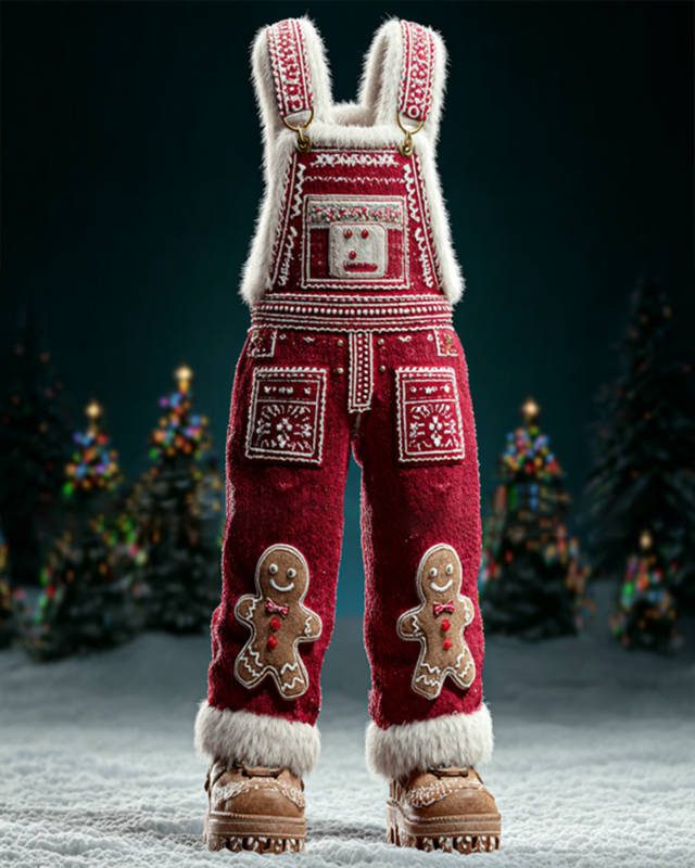 Women's Autumn/Winter Christmas-Themed Embroidered Jumpsuit Overalls 4779