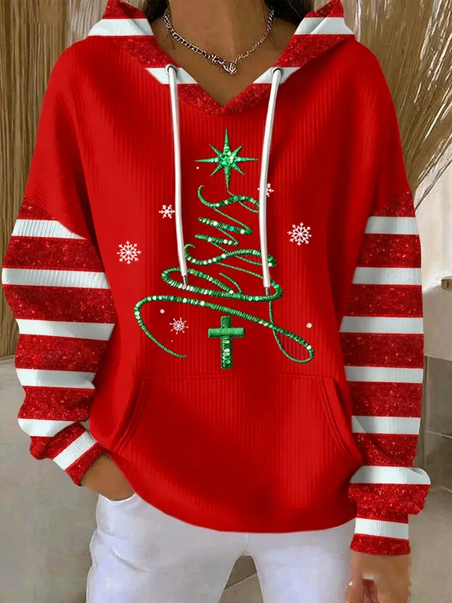 Women's Christmas Tree Print Casual Hooded Sweatshirt