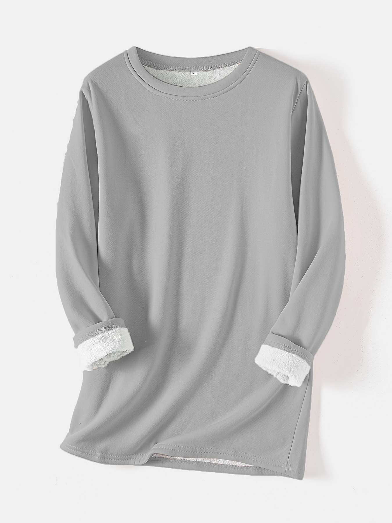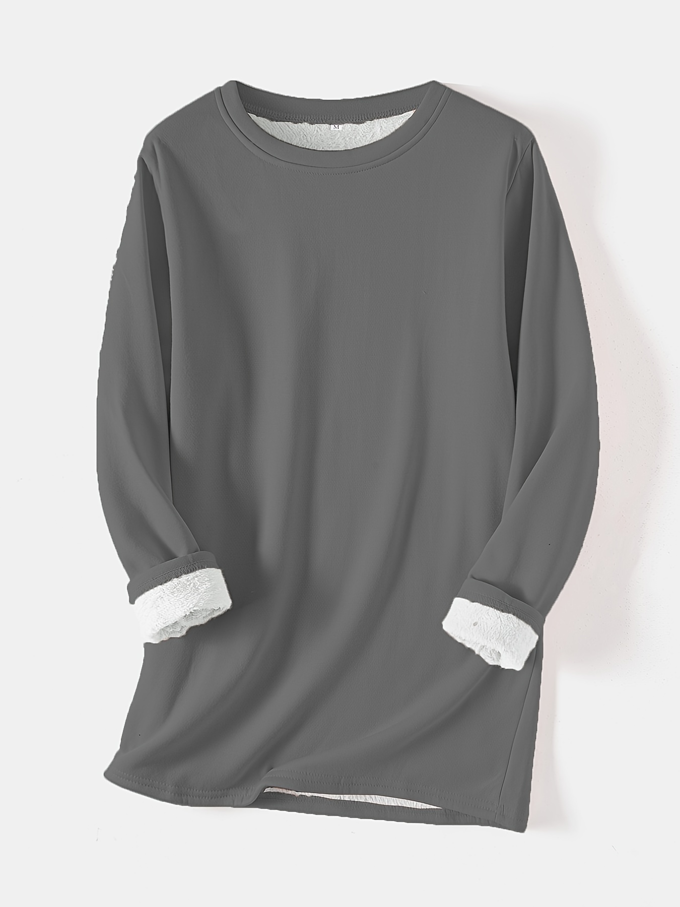 Women's Pullover Winter Warm Plush Lining Long Sleeve Sweatshirt, Slim Fit Warm Top, Women's Clothing