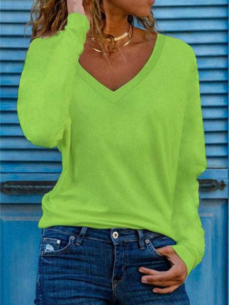 Women's T-Shirts Solid V-Neck Long Sleeve Casual T-Shirt